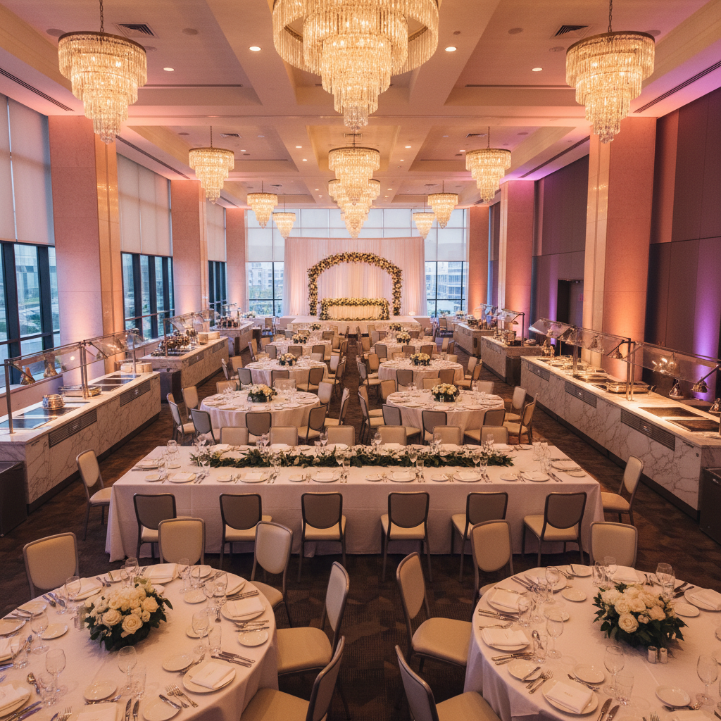 - Guest flow: avoid bottlenecks with dual buffet lines, staggered station openings, and clear signage.